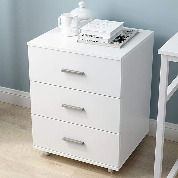 Soges 3 Drawer Mobile File Cabinets A4 Size Files Office Rolling Wooden Filing Cabinet With Lockable Casters White Walmart Com
